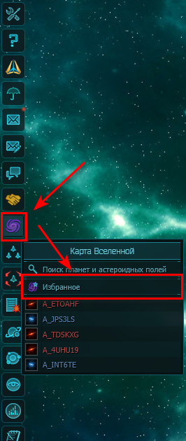 Нужно навести мышкой на кнопку Карта вселенной и подождать - появится контекстное меню.